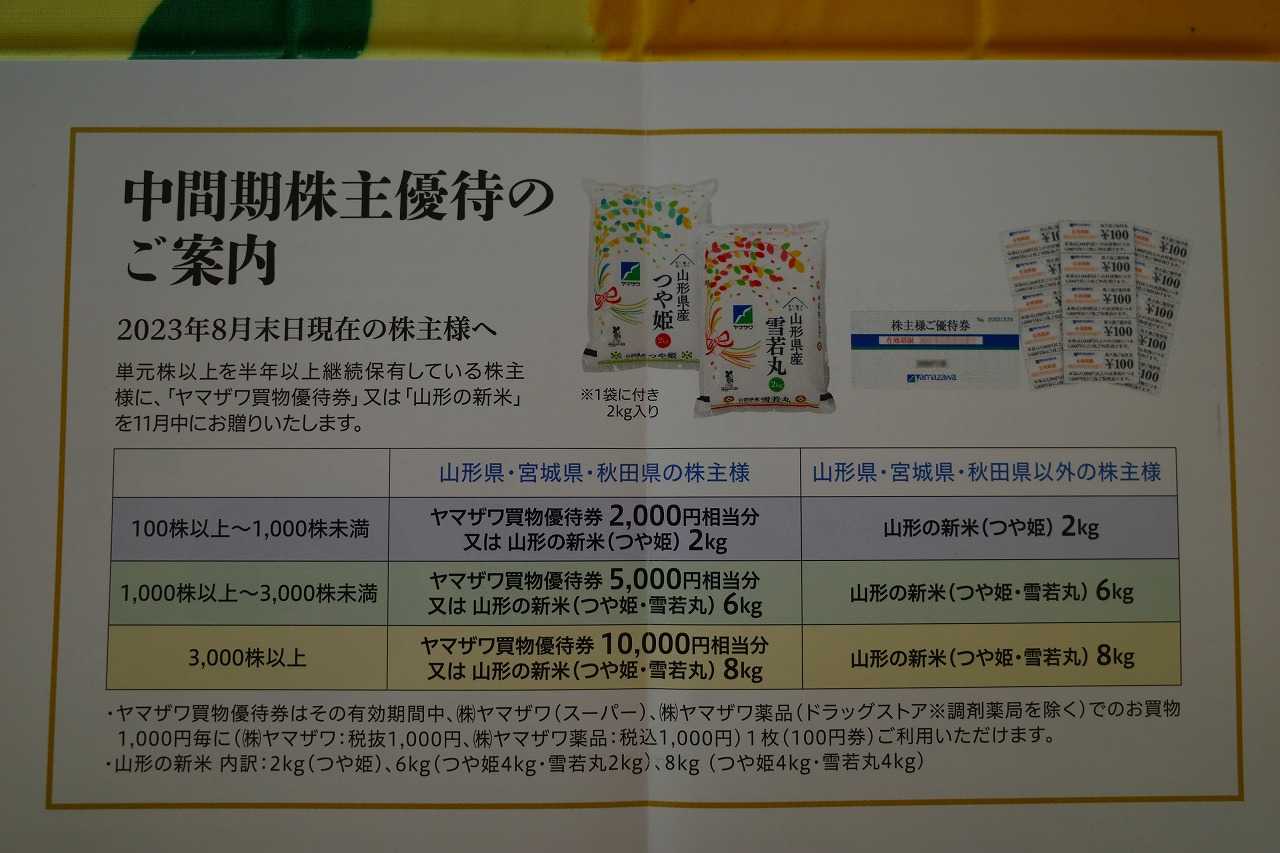 現在の株価は1156円、時価総額127億円、PBR0.48、自己資本比率は47.1%、今期予想PER178.0、配当利回り2.3%(27円)、総合利回り4.0%(27+18.8=45.8円)で、優待は「100株保有&6か月以上継続保有を条件」として、山形県・宮城県外の在住株主には2月に1000円相当の全国共通ギフト券
