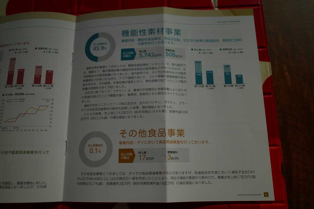 現在の株価は1058円、時価総額272億円、PBR1.06、自己資本比率は71.3%と良好、今期予想PER11.60、配当利回り3.2%(34円)、総合利回り4.2%(34+10=44円)で、優待は100株保有で1000円相当などの自社製品です。