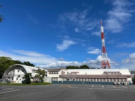 放射線影響研究所。奥に見えるのが、NHKテレビ放送所の鉄塔。