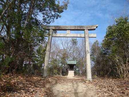 10分くらい歩くと、山の頂に。鳥居と祠。