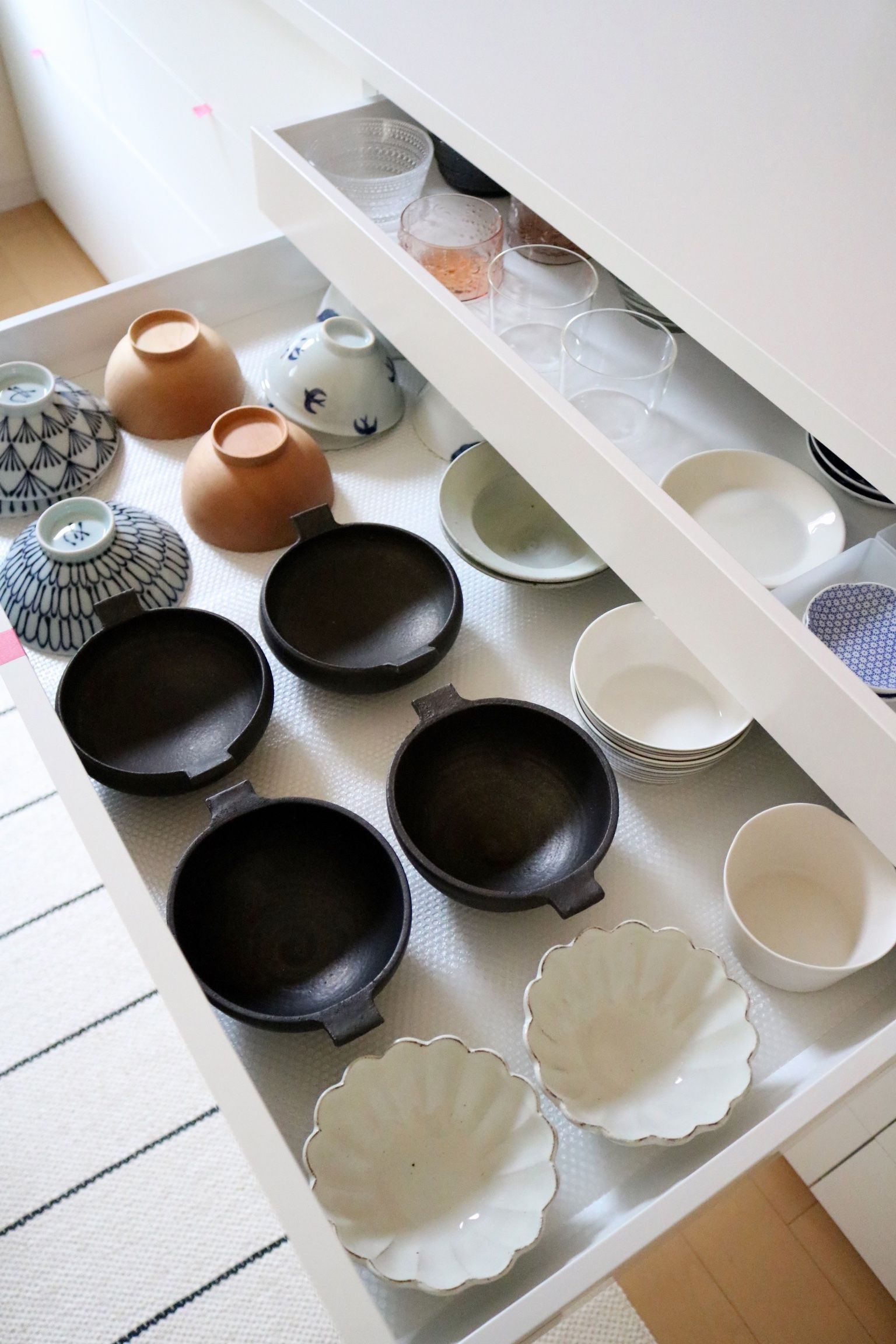 1番上のひきだしにはお茶椀や汁椀、小鉢など。