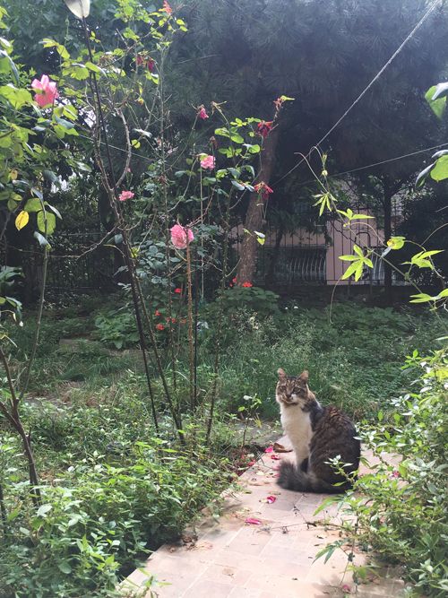 私はこの庭をパシャバフチェと命名したのですが、周りのみんなには「ケディバフチェ」(猫の庭)と呼ばれています(苦笑)正に猫が多数、ウロウロしているのでそう言われているのですが、去年の冬にハリネズミを発見しました。どうしているのかな〜と思っていたら、こないだ庭の低木の根元で寝ていました。存命だったようで、安心しました。しかし、人が来ても猫が来てもビクともせずに寝ているのはスゴい。。