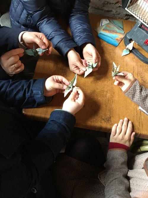 こんにちは。最近はめっきり暖かくなったイスタンブルですが、朝晩はまだ少し冷えています。前回のブログでお伝えしたように、私は毎週金曜日にダルプハーネ(造幣局)に通っています。来場者の方達と鶴を折るためです。イェディテペ•ビエナールはまだ続いていますが、だいたいの展示会はオープンした形です。折り紙は好評で、みなさん苦労しながらも最後に鶴が姿を現したときは子供のように喜んでくれています。いや〜、日本の折り紙、侮れませんね。本当に文化だな〜と思います。よくこう折ったらこの形になるとか考えられましたよね。それも一つや二つじゃないのですから。。。私なんて、鶴を覚えてるくらいで、他は何も頭に残っていませんが(苦笑)それでも覚えていてよかった!こんなに外国の人に喜んでもらえるんですから。トルコ人だけでなくロシア人、アラブ人、ドイツ人など色んな人と折りました。とりあえず、言葉は通じなくても(笑)何とかなるものです。みんな、それぞれ鶴を完成させてお持ち帰りして頂いています。思い出として残りますから。。。綺麗に折れました〜。明日の金曜日もダルプハーネに行きますが、来週の金曜日は行けません。師匠の教えているミマールシナン大学の生徒さん達がアトリエで授業を受けるためです。一応アシスタントなので(笑)私もその場にいて、師匠のお手伝いをせねばなりません。あと、閉館時間が午後4時から6時までに延びました。日も長くなって来ました。みなさん、必ず写真やビデオを撮って行かれます。新聞の取材を受けたのですが、その時、折り紙や墨流しなど日本文化について話して改めて日本文化ってすごいな〜と思わされました。何か否が応でも、日本人としての自分て何なのだろうと考えさせられました。折り紙についても墨流しについても何も知らない。興味をもったこともなかったです。私はただ日本に生まれて住んでいただけでした。トルコに来て、日本について色々質問される度に、ちゃんと答えられない自分。。。最近は開き直って、チャクマ(偽)ジャポン(日本人)と自分で言っています。。。(苦笑)でも、とりあえずは日本文化、勉強しなくては〜と思っています。国語便覧読んで通用するでしょうかね〜?(笑)日本美術史かなんか読まないとダメですかね〜。ビエナールも残り後、半月です。