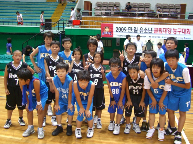 2日目は、朝から仁川市立体育館へバスで移動し、試合だけの一日となった。今年は参加チームが8チームのため、4チームずつ2つのグループに分かれ、そこでリーグ戦を行い、上位2チームが決勝トーナメントに進めることとなっていた。参加しているのは、堺のA・B・CとKBCのA・B・Cとウルサンと地元のブチョンの小学校チームだった。事前の情報では、このブチョンのチームが強いらしい。まず堺の1試合目は、私が受け持ったCチーム。相手はKBCのAチームだったが、全員5年生ということだった。ところがこの5年生チームが、なかなか上手い。1Qrからずっと接戦で、こちらも相手も決め手が無い。ルールは6分4Qrの流しで、ゴールはミニの高さだがボールが7号球でいつもよりかなり大きい。これが慣れない堺の子どもたちには、大きなハンディキャップとなった。相手は、技術のレベルは大したことは無いが、体格が5年生なのにこちらよりもいい。接戦で終わることは分かっていたが、私の予想では2点差で逃げ切れるかなと思っていた。ところが、4Qrも残り30秒というところで相手にポンポンと4点を取られてしまい、もう時間が無いというところで逆転されてしまった。このままタイムアップかと思ってたところ、こちらのロングシュートが残り5秒のところで決まり何とか延長戦に持ち込んだ。その延長戦を2対0で制し、何とか1回戦を突破。先が思いやられる出だしとなった。今年はKBCもかなりレベルが上がっており、堺も寄せ集めだけでは勝てる時代は終わったのだと思われた。フレンドシップという意味ではこれでいいのかもしれないが、私としてはちょっと寂しいな。この日は、堺のA・B・Cがすべて2試合ずつしたが、結果もすべて1勝1敗で、BとCは同じグループに入っているので、明日の直接対決で勝った方が決勝トーナメントに進むことになった。今日の結果1 KBC-A 対 堺 C 28対302 KBC-B 対 堺 A 48対383 堺 B 対 ブチョン 21対374 堺 A 対 KBC-C 30対195 堺 C 対 ブチョン 15対386 KBC-A 対 堺 B 22対40
