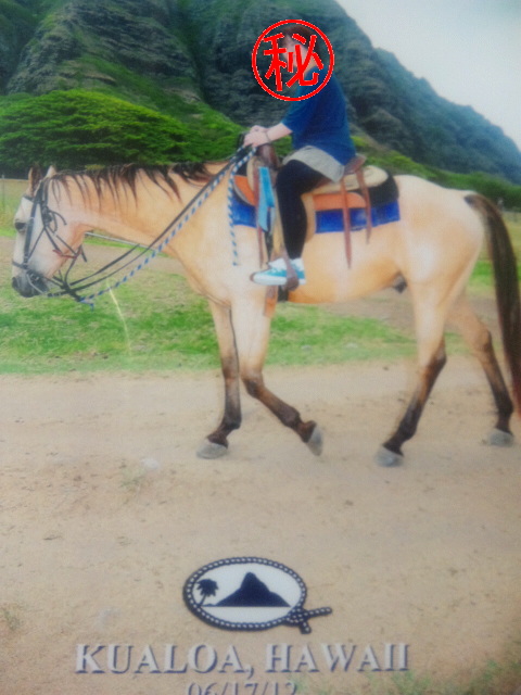 3日目唯一の1日自由dayクアロア牧場へ午前中はシークレットアイランド。いかだに乗って誰もいない島へ・・・いかだに乗った20人そこそこしか、今はいない、この島。自由だぁ~昨日買った水着になって海へ。冷たいけど気持ちいい(^v^)すぐそこを魚が泳いでる。すご~い。カヤックを3人でやった。前になかなか進まない。気が合わんな~(--〆)こういうの苦手。すぐ飽きる。コートがあったのでバレーボールを3人で(やれないから)丸くなってやってみたけど、16回続いた砂に足を取られるから、結構難しいもんだね。。。また私がすぐ飽きてござを持って砂浜へ。横になったら超気持ちいい(*^_^*)でもジリジリ暑かったのであんまりこのままでいたら焼けるからやっぱり海へ。本当に好き勝手やってる時間。こんなこと日常生活ではないわ~戻る時間になったからシャワーできれいにして着替えてボーっとしてた。そしたら現地の人がココナッツを割ってジュースと実をみんなに食べさせてた。ちょっとジュースが苦手だったので遠くから見守る。またいかだに乗り、牧場へ戻ったらお昼ごはん。バイキングでまたお肉とかアメリカっぽいご飯を食べて・・・次に選んだのがジープで探検。10人くらい乗ってたんだけど、外人デカイからうちらの座るところ狭い(+o+)英語でいろいろナビしてくれたけど、全然わからない。生の英語ってすごいね~ジープで山の上へどんどん登ってたらとっても景色がキレイ。山もいいね。ジープを運転してみんなを連れて行く係のお姉さん。めちゃくちゃかっこよかった。たくましいわ。その後は乗馬体験。馬に乗って30人くらい連なって山を歩きました。馬なんてそんな乗ったことないんだけど、乗り方のビデオを見ただけでもう乗せられる。しかも馬が順番に連れてこられて、体型なのかなんなのか馬に合わせて人が呼ばれて・・・私が最後の馬だった。これがトラブルの始まりだった。私の馬はマックス。馬に乗ったのは最後だったけど、娘とパパがもう先の方にいたので家族は一緒に進めるように私はみんなをぬかして前の方へ。どの馬もとてもよく調教してあって、ゆっくりと前の馬について行くから安心。な、はずだった。マックスは普通に歩いてはいるのだが、草があると食べてしまうおバカな馬だった( 一一)それで草を食べたら手綱を引いて、ダメだよ!って注意しなきゃいけないんだけど草ばっかり食べてるしマックスが草を食べるもんだから、後ろのパパの馬もマネして食べだす。で、列から遅れを取る。進んでの合図をすると進むんだけど、すぐ草を見つけて食べだす。最後には道から降りて木の葉っぱを食べだした。さすがに係の人が来て、マックスをむちで叩く。なんとかまた列に戻って進むんだけど、今度は列を乱してほかの馬の横を歩きだした。これは危険な行為らしく、ガイドさんが来て私に「キャンセルするの?2列は危ないから1列になってくれないと困る」みたいなニュアンスなことを言われ私、全然悪くないのに、マックスのせいで怒られた(--〆)どういうこと?なんとか列に戻すようにこちらはやってるつもりなんだけどマックスは本当にあかん馬で、ちゃんとしてよ~とずっと思ってた。やっと馬から降りる場所まで来て、順番にみんなが降りていたその時、マックスがなぜか後ろへバックし出した。連なっているもんだから、いつの間にかぬかした娘の馬にぶつかり、挙句の果て、蹴りやがった(ー_ー)!!キャーって娘は驚くし、蹴られた馬は負傷してほかの場所へ連れて行かれるし私は散々な目にあった。やっぱり最後に来たってことはどうしようもない馬だったんだよ。参加者がこんなに大勢来ちゃったからしょうがなく乗せたんだと思う。もうっ!マックスめ~(--〆)帰って家族にその話をしたら大ウケ。ウケたからいっか・・・。そして夜はまたエッグスシングスへ。娘がパンケーキ食べてない!って言うもんだから昨日は2号店だったのでビーチの近くだったからかファーストフード感覚なお店だったけど1号店はとっても良かった♪店員さんも楽しくて、黒人なのに日本語ぺらぺらだし日本人の店員さんもアメリカンジョーク炸裂だし今度はロコモコとハワイアンロコモコとモッツァレラチーズオムレツとスペシャルパンケーキをいただきました(*^_^*)全部を3人で仲間っこして食べたら、大満足☆彡おいしかった(●^o^●)ホテルまでの帰り道発見したsparkっていうお店。かっこいいTシャツがたくさん(゜-゜)ダンサーが着るようなデザインのが多くて、娘と私1枚ずつ購入。派手なやつGET!あとは買い忘れたお土産がないか確認をしてホテルへ帰りました。4日目10時にホテル横のバス停でまだ滞在してる家族が見送る中バスに乗りホノルル空港へ。そこから飛行機に乗って・・・19日の日記に戻ります。いい経験になりました(*^_^*)また行きたいです!バカ馬マックス↓