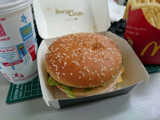 ビッグマックの1.3倍超サイズのバンズとパティ。おいしさ、食べごたえ、満足感、全てにおいてグランド級なバーガーです。食ってみた。普段はマックのセットだと、セットにワンバーガーつける当方。これは男性でもこのセットで十分の食いごたえだ。食ってる最中に、若干飽きてくるけど(笑。ビッグマックの約2.8倍のギガビッグマックってのも次回食ってみよう。