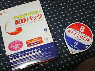 期限が切れちゃったウイルスバスターの更新パックを買ってきた。面倒だから明日でいいか。この森永バニラエイトなるアイス、頌は45年の復刻版らしい。古きよき時代か・・子供たちはこのアイスに夢中だったに違いない。安い味だけどなんか落ち着く。