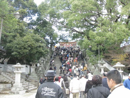今日は、かっぱくんの実家から一旦家に帰って、車で10分くらいの場所にある地元の天満宮に初詣に行きました。 階段を半分くらい上がって来た所です。三が日の三日目なので、階段はスムーズに上がれましたが上がると、参拝待ちの人でいっぱいでした。 ここは、菅原道真公が祀られている日本三大天満宮のうちの一つなんですが、大宰府天満宮ほど有名ではありません。でも、菅原道真と言えば学問の神様なので、毎年県内外から、受験生のいる参拝者で賑わいます。 拝殿に辿り着くのに結構時間が掛かったけど、ぴいちゃんも今年は中3になるので、しっかりお祈りしておきました。 来年はお賽銭も奮発せんとね。 ところで、31日からかっぱくんの実家でホームステイしていたとんかつくん。今日久しぶりに我が家に帰って来てから、ずっとここにいます。 ソファの背もたれのてっぺん。 動きません。 顔は幸せそうでした。 ↑↓応援よろしくお願いしま~す♪ ありがと~(o´・ω・`o)ノ゙