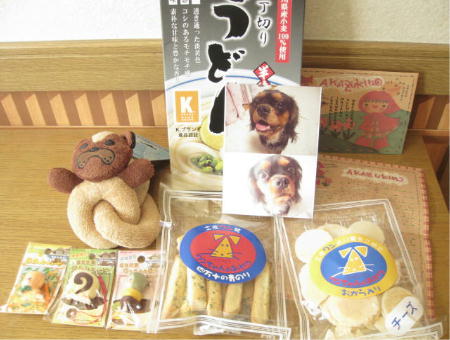 一昨日の事ですが、またまた☆モコモコ成長日記☆のモコモコ51さんより愛媛キューピーさんとお土産を頂きました。 高知在住のモコモコさんが、香川に行って愛媛キューピーをゲット!何がなんだか複雑でしたか・・・? つまり、香川に行かれた際に、香川キューピーは売り切れてたので、愛媛キューピーをゲットしてくださったんだとか。しかも、香川名物うどんのお土産と、とんかつくんには、おやつとおもちゃまで。本当に感謝感激です♪ 以前にもご紹介しましたが、キャバリアのココちゃんです。笑顔も真顔もキュートな男の子です。ココちゃんも、ありがとうね♪ では、香川でゲットされた愛媛キューピーズです。まずは・・・ 愛媛と言えば、思い浮かぶのがこれですね。 ★みかんキューピー ★愛媛のみかん栽培は、江戸時代の終わり頃始まったそうです。愛媛県は、一年を通して温暖で晴れの日が多く、畑の土も水はけが良く、みかん作りに良い環境に恵まれているので、生産額が、米をしのいで第1位になっているんだとか。 そして、カラフルな三色が可愛い・・・ ★坊ちゃん団子キューピー★ 松山市の銘菓の一つ。夏目漱石の小説『坊ちゃん』の中に登場するそうです。小説に登場する団子は湯ざらし団子で、今日では、上から、抹茶・卵・小豆の三色の団子を串刺しにしたものが、坊ちゃん団子としてポピュラーとなっているそうです。 そして、これまた愛媛銘菓 ★タルトキューピー★ 焼いてスライスしたカステラ生地に餡を巻いて作るロールケーキ状のお菓子。これも松山市の郷土菓子だったんですね~。 松山藩主・松平定行によって長崎から伝えられたそうです。 ポルトガル船が長崎に入港した際、長崎探題職を兼務していた定行は、海上警備にあたった折、カステラにジャムが入った南蛮菓子の味にいたく感動し、製法を松山に持ち帰ったそうです。餡入りタルトは、定行独自の考案した物だとか。明治以降、松山の菓子司に技術が伝わり、愛媛銘菓となったそうです。 え? とんかつくん作れるの? ほ・・・ほんとだ・・( ̄▽ ̄;) う・・・うん今はお腹いっぱいだから、また今度ね。 モコモコ51さん、本当にありがとうございました~♪ ↑↓開ききるまでちょいとお待ちくだされ~♪ ありがと~(o´・ω・`o)ノ゙