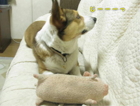 一昨日のとんかつくん。 久々にぶぅちゃんを振り回して遊んでいましたが、ちょっとブレイクタイム。 視線の先は、かっぱくん。 なぜかかっぱくんの動きが気になるらしい。 とんかつくんとしては、SPとしての任務も気になるのか、かっぱくんがトイレにでも向かおうもんなら、すぐにでも追って行きそうな目の動き。 でも、ただ物を取って席に戻ったのがわかると・・・ ホッとしたのか、ぶぅちゃんをあごの下に。 そうなのよ。そのぶぅちゃんは、元々あご枕。 でも、あご枕としての働きをすることは滅多になく、だいたいいつも振り回され役。 正しい使い方に、慣れてない感じが可愛いとんかつくんでした。 ↑↓開ききるまでちょこっと待ってね♪ ありがと~(o´・ω・`o)ノ゙