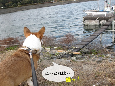 今日は久々に、午後から雨が降りました~。いつものように散歩は行きましたが、やっぱり雨は色々と面倒臭い。明日の朝は絶対に降りませんように・・・(-_-) さて、散歩コースに以前から気になる橋が・・・ これってちゃんと渡れるんじゃろうか・・・^^; 個人の船着き場のようですが、私だったら、無事に渡る自信がありません(^◇^;)バランス崩して落ちるかも・・とんかつくんに負けず劣らずビビりだし・・( 一一) とんかつくんはどうかな? ああ・・・そっちの方が心配だ・・( ̄▽ ̄;)しかし、怖い物見たさで行ってみたい気もする。 今度チャレンジしてみようかな・・^^; さて、やっと撮れた正面写真・・ やっぱり目線ははずします^^; ではまた~~ ランキング参加中♪1日1回応援よろしくお願いします<(_ _)>