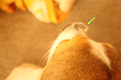 ソファでのっぺり中のとんかつくん。お手手はなかなか完治しないので、夜中とか、監視されてない時間に舐めてる可能性があり、 最近は、夜寝る時だけパラボラつけてます。 さて、今日の夕方、ぴいちゃんを迎えに行って帰ると、とんかつくんが2階から降りて来てビックリ。誰もいないのに、ひとりで上がるなんて怪しい・・ すぐに、ぴいちゃんが2階の様子を見に行くと、寝室の床にゴミ散乱(@@)犯人はもちろんとんかつくんですが、全くらしくない行動です(-_-) もしかしたら、寝る時のパラボラがストレスか、お手手を舐めようとすると、注意されるのがストレスか・・まあ、全部かな?( ̄。 ̄;) もうちょっと様子を見てみます・・^^; お手手ピクピクさせながら、気持ち良さそうに寝てました^^ ではまた~~ ランキング参加中♪1日1回応援よろしくお願いします<(_ _)>