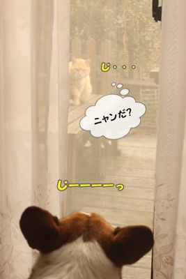 昨夜のとんかつくんです。テレビを観るぴいちゃんに、いつものように寄り添います。ちなみに、今夜もこんな感じでした。 さて、昨日の昼間、かっぱくんととんかつくんがふたりきりだった時、以前登場したあのネコさん・・・ 昨日は、我が家のウォーキングコースのデッキで、フェンス外にいる別のネコさんと、ニャーゴニャーゴと口喧嘩??を始めたらしいです^^; その様子を見たとんかつくんは、 すぐにかっぱくんの膝にお手手を乗せ、たまにバフバフ言いながら、そのまま静かに見守っていたらしいです。 だよね~窓が閉まってたのが残念だったね~( ̄▽ ̄) でも、お手手は秘かに、小刻みに震えてたんだとか・・(T▽T) まあ、そういう事にしときましょうかね・・(-_-) ホント、小さい頃からネコさんに弱いとんかつくんです^^; ではまた~~ ランキング参加中♪1日1回応援よろしくお願いします<(_ _)>