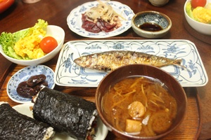 今夜は我が家も節分しました。例年通り、恵方巻き、鰯、鯨などを食べました。 今年は母の手作りの巻きずしで、最初から半分に切ってあり、食べやすかったです。お腹一杯で、半分しか食べられんかったし・・^^;ぴいちゃんと一緒に、北北西を向いて黙々と食べましたよ~。 かっぱくんは、夜中に帰って食べる事になります^^ 夜中なので、一部だけかな・・? ところで、肝心の豆を買い忘れてて、夕食後、塾の送迎ついでに買いに行きました^^; 普通に何度か食べた事がある、黒糖大豆。甘くて美味しいんですよね~^^ 本当は、年の数プラス1個だそうですね?その秘密の数だけ仕分け作業をしていたら、何やら熱い視線が・・ テーブルの下から、念力がっ!そうそう、通じるもんじゃありませんよ~( ̄▽ ̄) こうして、カメラを向けてる最中に・・ 強引に湧き上がって来ました(^◇^;)ちょっと危ないとこでした^^; そうだね、やっぱり変身しないとね。 はい、我が家の大事な福の神です。お面は昨年の使い回しですが・・^^; せっかくの神様のご登場なので、 豆代わりに、ギャラボーロを献上致しました。 年の数プラス1個の9個ございます。事が事だけに、いつもより大奮発です(-.-) それらしい桝入りだし、ビックリしてる?^^ 神様ですよ~お侍さんじゃありませんよ~(^_^;) どうぞ、お納め下さい。 フードを吸いこむ食べる時とは違い、ゆっくり丁寧に食べてました。 しかし、神様・・ 段々、変身が解けていってますが・・( ̄▽ ̄;) この後すぐ、いつものとんかつくんに戻りましたとさ^^;ではまた~~ ランキング参加中♪1日1回応援よろしくお願いします<(_ _)>