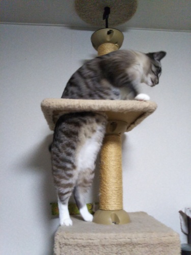 今年の夏は雨が多い気がするぅ~。週末の雨率も高かったのでまだ今年はバイクツーリングに行っていません。その代わりぢゃないけど日帰りバスツアーには2回も参加致しましたぁ~そのうちブログにアップ致しま~す。8月になってから太陽の陽射しがジリジリっとしてきましたね~。モカがキャットタワーの頂上でだらしなく伸びておりました。猫の寝姿で季節も分かりやすいわぁ~。