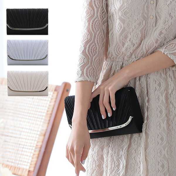 パーティーバッグ クラッチバッグ 2WAY ショルダーバッグ 大きめ チェーン 結婚式 パーティー 二次会 斜めがけ 黒 フォーマル プリーツ バッグ 鞄 レディース ベージュ シルバー ブラック