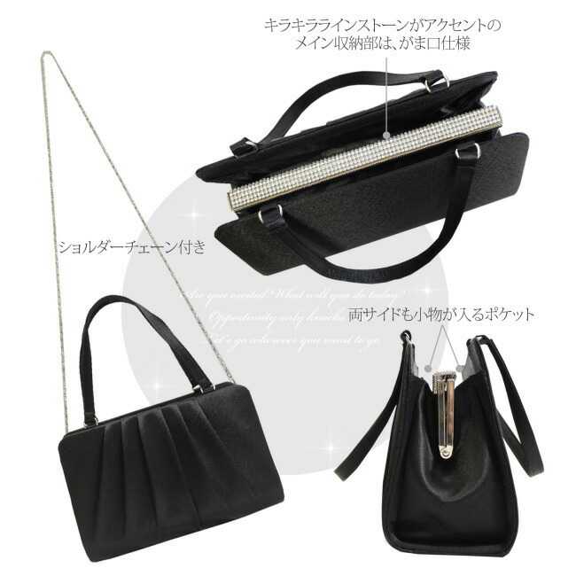 (2〜3日営業日発送)2WAYビジューサテンハンドバッグ(黒・シャンパン・シルバー) クラッチ がま口 ハンドバッグ 結婚式 パーティ