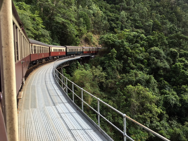 ケアンズではキュランダ列車に乗車し、車窓を楽しむ