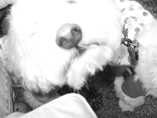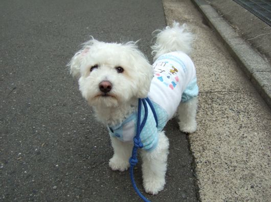 ウッヒョヒョ~イ!!晴れた! 晴れた!!道路も乾いたしさぁ「お散歩に行くぞぉー」ムムム・・・ なにか企みましたね!!ヒヒ・・・ばれた?明日はまたらしいから・・・今日はタープリ歩かせよう~っとヒドイッ!!今日のリードはおNEWでーっす!!ハーネスとリード一体型 ROPE-N-GO(ロープ&ゴー) の手綱からヒントを得たそうな感触はいかが?エエちゃうん?始めまして! トイプーの「チビ」ちゃん♀飼い主は初老の男性 「チビちゃん」??・・・もっとカワイイ名前を付けてあげればいいのに~余計なお世話でしたぁ~近寄らないでぇ~ 噛みちゅくわよ~!!アリャ~ 嫌われちゃいましたぁ~まっ そんな時もあるさ メゲルなBrother!!さぁ これからいつもの公園に行くよ~ん!!ゲッ まだ歩くのかよ~もうチカレマヒタァ~歩け 歩け まだまだ歩くぞ~また見にきてねぇー今日もポチッと応援クリックお願いしますぅー