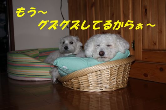 朝の天気予報で「関東地方も どうやら梅雨入り?」なーんて言ってた窓を開ければ朝からド~ンヨリ台風も近づいていて今日の午後から週末までとか・・・午後は ちょこっと用事があるしぃ・・・ JIJI様のだがら夕方までには実家に行ってJIJI様にゴマすって・・・ホェ~散歩に行くなら午前中しかチャンスないぞと思いながらもウダダァ~ ウダダァ~ ウダウダダァ~よーっし 昼前に散歩に行くか!!って散歩の支度して玄関を開けたら時すでに遅し・・・・・ ウッ!! オーちゃんとアーちゃんの冷たい視線が・・・・・シ~マシェ~ン!!また見にきてねぇー今日もポチッと応援クリックお願いしますぅー