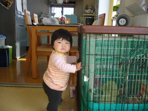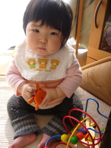 今日はテニスはお休み。ダンナ殿は今日から出張です。今日ははるぽん午後からプールなのでそれまで洗濯などしつつ過ごします。右手の人差し指の太い方の関節にひび割れが出来ています。去年の10月頭から治らないのだ・・・。最初は手湿疹だったのに、いつのまにかひび割れになって治ったと思ったらぶり返す。まるで何かがここから吹き出しているようです。ぶ~。おかげさまで右手の人差し指、完全には曲がりません。軽く2ヶ月半曲がってないってこと?大丈夫なのか・・?はて・・。今年に入って、はるぽんはプールでアームをつけています。アームとは、腕に通す浮き輪。上手にやると、それでぷかぷか浮けます。・・はるぽん、浮けるんですヨー。笑でもたまに自分でぼがっと下を向いて水を飲みぶはぶはとむせています。。ま、それもいい経験か・・?目を離さないようにしないとね。次はアーム付きの写真を載せられるといいなあ。最近のはるぽん。■大人の真似がだいぶ出来るようになってきました。→拍手・床ばんばん・窓とんとんなどなど。■やたらべたべた。→くっついていたいみたい・・。そういう時期?■風呂で泣く。→おもちゃ導入時期か!? 抱っこすると泣きやみますが、体を洗ってるときによく泣きます。■ごはんだいぶ食べるようになった→玄米がゆお気に入り。 あとは大根や人参をおだしで煮たのは好きみたい。■おむつ替えるときに「あんよぽんは~?」というと足を上げる。■夜寝るとき、おかーたんの上に寝る。■二つのものを合わせてカチカチ言わせるのが好き。■音を出すものが好き。■階段、3段ぐらい上がれるようになった。■絵本や絵を見て指を差すように。→「きりんさんだね」というと、一度おかーたんの顔を見るように。 ベビーサインを覚えるのは今なのか?笑 頑張っておかーたんがサインを思えねばです・・。 今度、動物園一緒に行きたいな~。サイン使えるチャンスです。笑■ストローでお茶を飲めるようになった。■驚くと泣くように。■昼寝、時間が不規則。■夕方には眠いのは相変わらず。こんな感じです。遊びに行く場所を広げていって、興味のアンテナを伸ばしてあげたいものです。