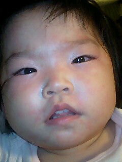 え~と日曜日。オットはテニスの試合で起きたらいなかった。はるぽんの熱はだいぶ下がったけど機嫌が悪い。おっぱいから離れません。は~・・・・。で、「歯が痛い、歯が痛い」とサインしていたのをよ~く見ていたら・・痛いのは歯か?さらによ~く見ると膝にぷつぷつが・・・。・・みゃーたさんちのサーちゃんの症状で最近mixiで見た気がする。。これは、手足口病・・??ぷつぷつの量が少ないから自信がないのだが当てはまるような気が・・。とりあえず(なにがとりあえず?)髪が汗で暑そうだったのでバーバーママが開店。外でチョキチョキ。ざんばらだけど、ま~、いいでしょ。帰宅したオットにはるぽんの散歩を頼みその間に掃除機をかけ、フローリングの拭き掃除。暑い・・。その後はるぽんの体調が小康状態だったので外に早い時間からちらっと晩ごはん。小康状態とはいえ、夜はまたお世話が予想されるので晩ごはんははるぽんはオットにまかせておかーたんは栄養補給なのであります。はるぽんはお風呂の後、無事ねんね。(一度大量にげ~して焦りました・・・)おかーたんはテルミーのお勉強をして就寝。一緒に寝だしてからおっぱい爆飲みだったはるぽん。一緒に寝ると安心するのか、おかーたんの上で寝ていました。翌朝腰が痛かった。。。