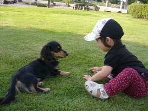 今日は出ずっぱりでした。結果的にそうなってしまったのだが・・。まず10時半→岡田にあるホメオパスの先生のとこでアロマオイルの販売をやるというので、場所も知りたかったしなんとなく興味があって訪問。咳や鼻水詰まりにいいというオイルを1本購入。ヴィックスベポラップみたいなニオイがする。12時→はなまるうどんで昼ごはん12時半→今日午後に来ると行っていた義母から電話。自分の家の車で来ていないので、悪いが取りに来た荷物は浅間のテニスコートまで持ってきてくれないか、と。13時半→浅間のテニスコートに向かう。みゃーたさんちが近くなので「行くよ~」と連絡を入れておいた。14時→義母と合流。でも向こうはテニス、はるぽんは車中爆睡なので私も車の中でぼんやりすることに。読みたかった本を読む。15時半→義母テニス終了。駐車場で雑談。はるぽん起きる。16時前→みゃーたさん、来てくれる。散歩することに。17時半→帰宅。はるぽん、思いがけずみゃーたさんとサーちゃんに会ってはしゃぐ。じてんしゃ~ちょっとだけ似てると思うのは親だけ?りんごん もらいまちたしかしはるぽんの熱気に圧されてか、サーちゃん控えめになってしまうのよね。。ごめんねぇ。。少しお姉ちゃんな分、赤ちゃんに譲ってくれるのかしら。あ~楽しかった~と帰宅して、はるぽんのトイレにお付き合いしてたらピンポーンこれが昨日の後日談ですよ。3ワホームの営業、いきなり来やがった。夕方、しかもアポなし、しかもそれを謝りもせず。「ダンナさんと昨日の話、されました~?」はるぽん、不審者にびびって泣いてました。「あの~、どうでしたか~?」って、知るか、バカモノ!!!(まずは訪問した先の人がどういう状況か考えろ!こんな無礼な会社からものを買おうと思うかっつの。「お電話とかいただきましたっけ? 突然来られてもお話しすることないですから」と追い返してしまいました。この家に越したときに遭遇した、某、松本で力をふるっているというAブルの営業さんと似てました。いやいや、3ワもAブルもいい人はいると思うのだけど私の当たりが良くないのですよ。。家の前の道路の脇に路駐した軽自動車の中で何かに書き書きしてから立ち去っていきました。2度と来るな!たった1人の営業の態度で、こんなに思われてしまうのが一般消費者を対象とした営業マン。オソロシイよね。よくわきまえてくれ、って思うよ。。。あれは会社の体質なのか、あの本人の体質なのか。。
