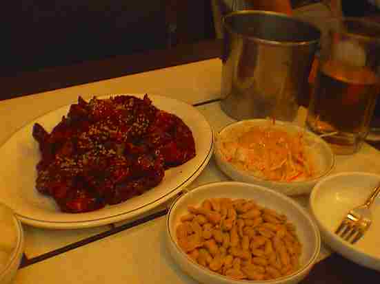 2007年8月19日~9月2日男の人って好きですね~鶏焼きが~今回2度行ったお店「チョンジンヨンヤンセント(清進栄養センター)」たぶん!?「ヤンニョムチキン(味付け)」ちょっぴり辛めヨン字が読めんっちゃ~上から2番目の料理怪しいお店じゃないよ~んやっぱし・・・殿方が多いっちゃ~朝から母の定期健診で、ダンナが入院してる病院へ遅くなっちまっただ~~*英語&韓国語を楽しく紹介しているブログです* 中国語・スペイン語・フランス語もあるよ~♪マジで笑って身につく英会話&ヨン様もびっくりキムチ韓国語