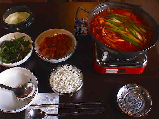 2007年8月19日~9月2日本日、このブログに遊びにきてくれてる「ねえさん」と会うのsuzuの訪韓日程に合わせて、ソウルにやって来るっちゃ~きっと「セレブで韓国チックなピンク」が似合う「ねえさん」やろうなぁ~今頃・・・・「ねえさん」旅立つ・・・何してんのかなまさか「機内食」食べてないよねうんうん、めっちゃ、楽しみやわんしっかり食べて、体力をつけとこ~~っと・・と思い旅館を出ると隣の店が、ランチ時にいつも賑わってるのでここで、食べてみる事にした「ジェュチョチッ・ランチメニュー」カセットコンロをセッティングしてくれるので一人でも、火にかけてもらえて嬉しいなぁ~「キムチチゲ」わぉ~~辛そうやけど、ウマイんやろーねタップリな量のおかず「練り物のピリ辛味」さっぱり味の「海草サラダ」「ケランチム」まで付いてるよ~んさあ、しっかり食べるぞぉ~~~*英語&韓国語を楽しく紹介しているブログです* 中国語・スペイン語・フランス語もあるよ~♪マジで笑って身につく英会話&ヨン様もびっくりキムチ韓国語