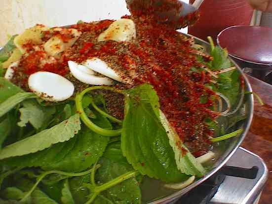 2007年8月19日~9月2日この「テジョカムジャグッ」で食べるのも今回の目的の一つやったえ?目的ちゃ、食べる事ばっかしやんと思ってる、そこのアナタノォー、ノォーでっせ友達に会って、飲んで食べる・・・ん?やっぱり食べとーやん主役??の「カムジャ(じゃがいも)」も丸のまんま、ゴロゴロ入ってるよん甘くて「ほっくほく~」1個でお腹が膨れると〆はやっぱり「ポックンパッ」で決まりっちゃご飯を頼むと、アジュンマが作ってくれま~す刻んだキムチや韓国ノリをたっぷり入れてくれるよめっちゃ「うまいでぇ~」場所はね、地下鉄4号線「誠信女大入」3番出口を出て背中を丸めてマッコリを飲んでる哀愁漂う「おっちゃん二人」を眺めながら左に進むと駐車場があるのではがれた「サンダルのソコ」の持ち主が歩きにくいやろーな・・・と思いながら左折し少し行くと、左角にあるっちゃねあ、注文したのはコレ上から2番目の「チェゴダ~(最高だ~)」「10,000ウォン」コーラ、ご飯を追加して「12,000ウォン」一人が6,000ウォン「安っ」味も雰囲気も「チェゴダ~~~~」やった*英語&韓国語を楽しく紹介しているブログです* 中国語・スペイン語・フランス語もあるよ~♪マジで笑って身につく英会話&ヨン様もびっくりキムチ韓国語