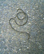 Y子と散歩をしている時 奇妙な物を見つけた。これですが 分かりますか?虫なんですが 虫とは思えない。そう、今は干乾びているんですが水の中に入ると うにょうにょと動き出す。一年ほど前 大カマキリが死んでいた。その死骸から この虫が出てきた。そう寄生していたのだ。カマキリが死んだので もう、いられなくなって出て来たのだ。暫く動いていたが その内乾燥して針金のようになって 動かなくなった。私の好奇心は これが なんなのか調べてみた。そうして ハリガネムシということが分かった。ハリガネムシ気持ちの悪い生き物です。これを見たとき ショックを受けたと同時に 人間には寄生しないのかという恐怖も抱きました。触らないようにしたいです