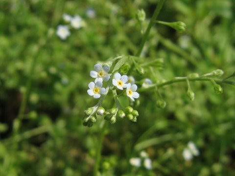 この花、見たことありませんか?道端とかに咲いている ちいさな水色の花をつける草なんです。これが、今 からすのエンドウやナズナ オオイヌノフグリたちと咲いています。私はこの小さい花ながら可憐なこの花が大好きです。以前からなんという名前かと思っていたのですが この花の名前をご存知ですか?この花はキュウリグサと言うんです。もっといい名前が良かったなと思います。茎や葉をこするときゅうりの匂いがすると言う所からついた名前だそうです。ミヤコワスレという花の名前なんて素敵でしょ。そんな風な名前が良かったです。植物の名前では葉が臭いから クサギ とか 同じように臭い匂いがするから ヘクソカズラ とか 酷い名前は他にもあります。植物もいい迷惑ですね。