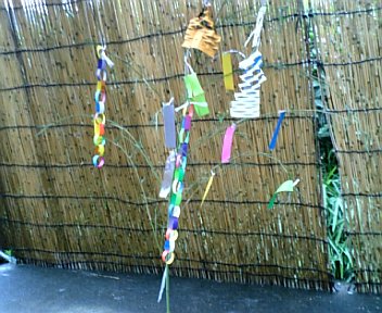 7月7日は七夕様。今年も笹飾りを作ることにしました。近くの藪に笹を取りに行き飾りつけることにしました。両面色紙を切ってワッカを作ってつなげて鎖の出来上がり。Y子も糊をつけたり作りました。短冊にも嫁と願い事を書いていました。他の飾りは提灯と網です。これは私が作りました。 画像が今一ですが出来た笹飾りです。外に飾ってあったのですが夜中の2時前に大粒の雨が落ちてきたのであわててしまいました。一生懸命作ったのが一日もしないうちにだめになったら悲しいですから。昔、子供らと作った事を思い出しながら楽しい時間が過ごせました。残念ながら7日は台風が近づくようで大雨でしょう!7日が晴れの日はないんですよね。