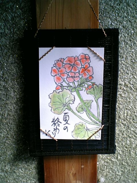 私の誕生日に絵手紙で祝ってくださったともちゃんから 時々絵手紙をいただきます。いただくと嬉しくてしばらく飾って楽しんでいるんです。でもそのままだと味気ないし 額に入れれば飾る場所も限られるし 何かいいものないかなと探していたんです。そうしたらいいものを見つけました。そこはショッピングセンターにあるちょっとおしゃれな物が多い 100円ショップでなんです。ダ○ソーではありません。 これです。ちょっと画像サイズが大きすぎましたね。どうですか?ともちゃんの絵手紙も素敵でしょ!次の絵手紙はどんなんでしょう。とても楽しみなんです。これって催促みたいですね、実は首を長~くしているんです。わくわくしながらね。でも、ともちゃんはお忙しい方なんですよ。 今日はいいお天気になってきて 昼間は暑いくらいでした。夕方犬の散歩をしていて西の空に大きな赤い太陽が見えました。まるで元気を出して頑張ろう!と言われているようでした。夕日に向かって走り出すと言うようなことはございませんでした。心は青春でも孫もいるおばあちゃんですからね。と言っても走り出したくなる年代なんですよ。これって何人ぐらいの人が理解してくださるかしら?
