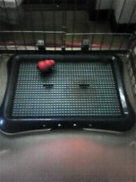 我が家のワンちゃんライムは 三ヶ月で家に来たときにはトイレでちゃんと出来てました。初めて買ったトイレは メッシュのないタイプだったので いたずらをしました。だったらとメッシュのあるのに替えたんです。両側でパチンと止めるタイプなんですが 上手くはずしてまたシートをミジャミジャにしてしまってました。うんちをしてその後するので 悲惨な状態になってしまい 後始末が大変です。一人で留守番をしている時に必ずするんです。悲惨な状態のトイレを何回私が片付けたやら。娘が留守だと自棄になるのか寂しさの為 私を呼ぶためするのか分かりませんが。私ばかり大変な片付けはもうごめん!そうしたら娘がインターネットで色々調べて三個目のトイレをネットで買いました。今日着いたので 午前中 替えました。もういたずらは出来ません。あ~、これでやれやれです。これが新しいトイレです。赤いのはオモチャ。ちゃんとトイレでおしっこがしてあります。