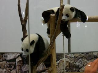 11日はアドベンチャーワールドの日。Y子らはとても楽しみにしていました。連休の真ん中の日ですから凄い人出が予想されます。7時に朝食を取り8時半にチェックアウト。8時半にアドベンチャーワールドの駐車場が開くので コンビニで昼食用におにぎりやパン 飲み物を調達していざ!出陣。もう既に沢山の人。入園口に並ぶ列が数列。開園は5分早くなりました。私達はイルカのショーやアシカと小動物のショーが見たいので それまで双子パンダやペンギン ラッコ 他の物を見て回りました。 両方ともとても可愛くて。ショーの写真は撮れませんでした。イルカのショーを見ながらおにぎりを食べて お腹もまあまあ膨らんだ所で ショーを見終え ケニア号という園内を一周するバス(汽車のような概観)に乗りました。Rは寝てしまいました。でもその後 ふれあい広場を走り回り動物には平気で触るし こちらが冷や冷や!直接動物と触れ合う事が出来るので キリンやらくだなどにおやつ(園で売っている動物用の)を手からやっていました。孫三人 全然恐がらずに平気なのでびっくりしました。4時まで楽しみ 帰ったんですが まあ 凄い渋滞!途中和歌山で降りて 息子が食べたいと言っていた和歌山ラーメンを食べました。携帯の口コミサイトで調べて まるさんらーめんに行きました。かすラーメンが美味しいと口コミで見たので探し出して食べました。珍しいホルモンが入ったラーメンですが 臭くなくさっぱりとしたラーメンでした。家に帰ったら11時前。流石にみんなはぐったりでした。でも、Y子が ここに来れて嬉しかった、良かったと大喜びしてくれたので 私まで嬉しくなりました。宿泊した クワハウス白浜 もとてもいい所で 食事も美味しいしまた行きたい所になりました。次の日Rが鼻水ダーダーで7度5分熱が出てしまい Y子の幼稚園を休ませて病院に行き昨日の夕方帰って行きました。いい思い出が出来て良かったです。最後に白浜の写真を。 円月島です。Kと共に。 千畳敷です。 三段壁です。いいお天気に恵まれて最高の景色でした。