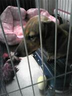 木曜日の夜から異変がありました。お昼までは外で元気に遊んでいたんです。夜に娘が 「ライムのうんちが大変な事になった!。」と言うんです。うんちがしゃーしゃーでそこら回し うんちまみれになったと。金曜日の朝もシャーシャー。心配しながら娘は仕事に行きました。昼間は私が側で見ていたんですが 少し 離れた途端 シャーシャーでトイレから外れてうんちがライムのベッドのクッションに付いています。そして、ケージの外にまで飛んでいます。ライムは大変なことをしたという顔で ケージの隅で くーんくーんと鳴いています。ライムをキャーリーケースに入れておき それから綺麗に掃除をしました。これがお昼前。この日の朝 ライムは御飯をほとんど食べなかったようです。水分も余り取りたがりません。調子が悪いんだなと様子を見つつ 側についていてやりました。今度は3時半頃 また少し離れて 洗濯物を取り込んできました。そうしたら 今度はもっと酷い状態になっていたんです。もう、可哀想で。また 同じように掃除をして 戻しました。この日は娘と頻繁にメールでライムの様子を報告していたんです。夕方、このままではいけないから 病院に連れて行こうということになり 娘が帰ってからとても評判の良い病院に連れて行きました。そこは夜8時までと診療時間が長いんです。でも家からは30分掛かる隣町です。着いたのが7時40分ぐらいでしたが 沢山のワンちゃんたちが来ていました。さすが評判のお医者様です。来る途中にキャリーケースの中で二度ほど戻してしまいました。病院でも一度便が出てしまい 助手の方に綺麗にしてもらいました。レントゲンを撮って診てもらったら 「胃の状態からして 胃腸風邪を引いています。下痢止めの注射をしておきます。明日の朝まで絶食にしてください。また朝の様子を電話で教えてください。そして、状態が良くなったら水を少しから始めてください。飲み薬と食べ始めようの缶詰を出しておきますから。今、胃腸風邪が流行ってきているんですよ。」帰りの車の中はキャリーケースに入れておくより 抱っこのほうがいいですよとバスタオルまでくださいました。ライムはお陰で大分元気になり 夕食を食べれたようです。今はうんちをしないか 戻しはしないかと また私が側にいます。やっぱり直ぐに横になり あの元気坊やはどこにいったの?というぐらい別人(犬)です。早く元気になって欲しいです。