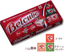 ブルーチーズ というものを初めて食してみました。料理を施したわけでもなく直接食べてみたのでその塩っからいことといったら!高血圧の人にはお勧めできないなと思いましたが調理して食べたらいいのでしょうか。とにかく経験☆ と思ったので食べてみたのですが、ブルーチーズはもともと調理して食べるものなのかな・・・。いやはや、最近チーズ好きに火がついたもので、こんなにいい食材も食べたことがない貧乏人でして詳しいことは分かりません。ブルーチーズのことはさておき、今回私が美味しいと感じたチーズは Belcube ベルキューブです。(↑3タイプのベルキューブ先へクリックでジャンプ!)3タイプが発売されていて私が購入したものは上の画像にもある レッドミックス です。理由は パッケージが可愛かったから というだけで購入を決めたのですが買って正解でした。トマト・グリーンペッパー・ハム と3種類の一口サイズのチーズが24個入っていて、どれを食べても美味しくて特にグリーンペッパーが気に入りました。この ベルキューブと生ハムを用いた料理 を紹介したページがありました。私は作ってはいませんが、チーズと生ハムが合体したらどうしてあんなに美味しいのでしょうね。考えただけでも キューっといっぱい (´゚ω。`)ノ ハラホロヒレハレ ですな?