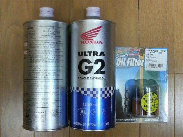 先日、楽天市場でクラブマンの「エンジンオイル」と「オイルフィルター」を購入したのが届きました♪エンジンオイルはホンダ純正の「ULTRA G2 10W-40」です。オイルフィルターはDAYTONAの「SUPER OIL FILTER」です。昨年9月にクラブマンを購入してから3,000kmは走行していますが、一度もオイル交換していませんでした...。今週末に交換予定なんですが、土曜日は仕事で日曜日は雨みたい...。ウズウズしちゃいます♪↓フィルターの折目が純正の約20%増し♪