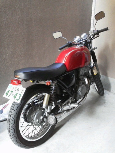 本日(8/10)台風11号も無事過ぎ去り、天気も良くなったので久し振りに愛車クラブマンのエンジンを掛けようとしたんです。当然バッテリーが弱ってるのでフル充電で臨んだんですが、全く掛かる気配がありません...。実は6/16のお散歩ツー以来、エンジンを掛けてませんでした...。外装は少しずつ綺麗に仕上げてるんですが、走らないと意味無いですね...。今度ちゃんとバイク屋で見てもらおう!秋のツーリングシーズンまでには何とかしないとね...。 ↓ヨンフォアカスタムのクラブマン♪