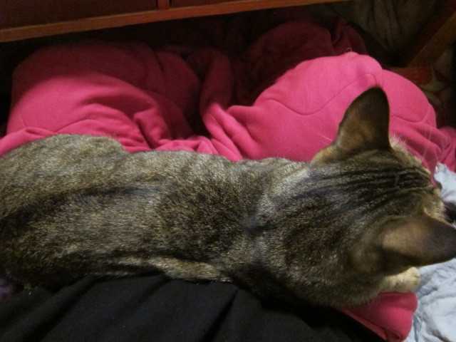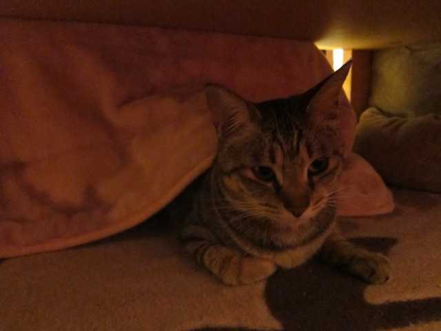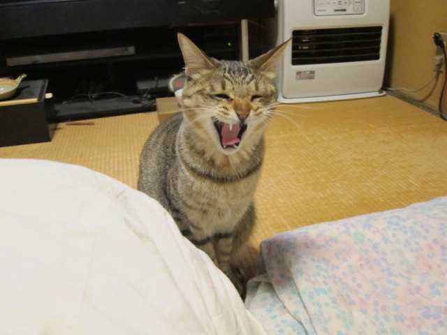 昨日は夕方から父と会ったせいか(父の弟。私からみて叔父さんもいました)なにやら疲れてしまい私も夫も22:30に就寝しましたその時はniaも大人しく一緒に眠りについたのですが夜中の3時にニャーニャー鳴いて私を起こそうとしますたぶん私達の留守中も寝ていたんだろうしたっぷり寝てもう眠れないエネルギーが有り余っている状態なのだろうな起きたら遊ぶから今は寝かせてくれーなんて言葉が通じるはずもなく1回は無視しましたが再び4時頃に起こされたので少し遊んであげました構ってもらえて満足したらしくその後は自然に目覚めるまでぐっすりと眠らせていただきましたさすがに3時は早すぎるだろやめてくれ
