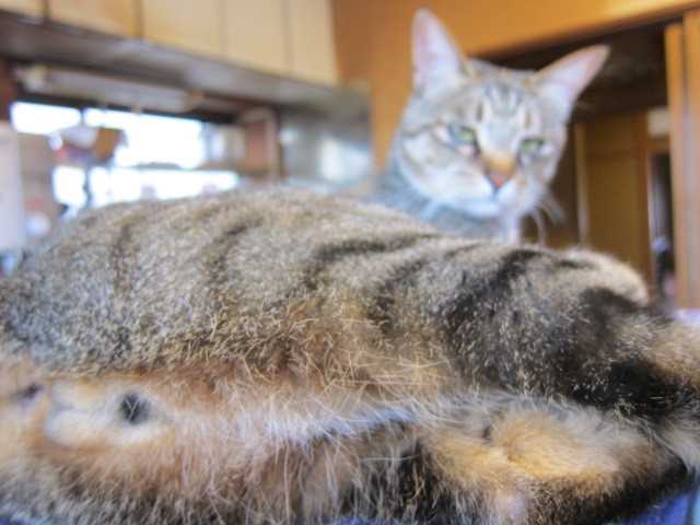 タラの芽と姫竹とわらびを貰いました早速タラの芽は天ぷらにしました塩でいただきます~~熱々で旨い姫竹(根曲がり竹)は茹でて皮をむく。わらびはあく抜き。美味しいけれど下処理は少し面倒だわねなんで君は監視員みたいに私を見張っているのだろうかしかも少し怒り顔だしw