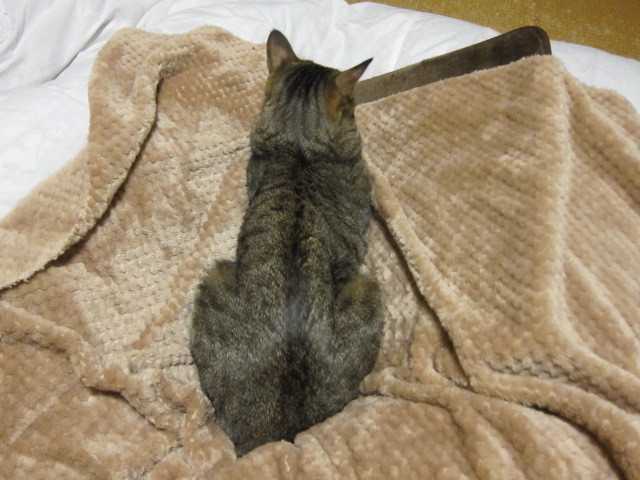 布団をふみふみしてから私のひざに乗ってきてのどゴロゴロ鳴らすniaもうすぐ2才になるのに君はいつまで経っても甘えん坊さんですにゃ昨夜は雨がしとしと降っていたせいかキジ白にゃんは姿を見せなかったですniaは窓からずっと外を眺めていました