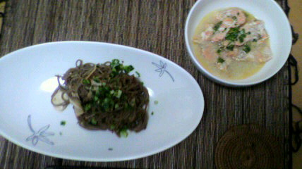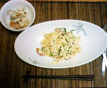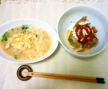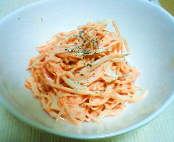 今日も「しらたき」料理です。今日は卵を和えてみました。優しいお母さん味ですね。にゅうめんとかと味が似ている気がして病気の時などはいいかも・・。ちょっと物足りないので「さばの缶詰(しょうゆ味)」を使って玉葱と和え、オーロラソースをかけて食べました。一人暮らしをいているとお魚って本当に食べないので、缶詰って結構貴重です。