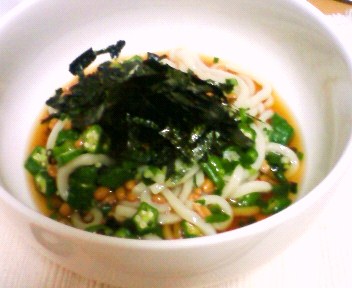 今日はあちこちのオフィスに行ったりきたりで移動が多く、すっかり疲れてしまったので、一品料理にしました。「納豆とおくらのネバネバうどん」です。めんつゆを使っているのでとっても簡単。ちょっと涼しくなってきたので温かいおうどんにしました。美味しかったです。