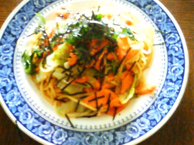 暑い日々が続いていますね。晴れると布団干したかったとか洗濯したかったとか思ってしまう辺りに既に年齢を感じますが。ブランチに「焼き鮭の和風パスタ」を作りました。庭に大量の大葉が出来ていたので即利用です。 夜は暑いので冷麺にしました。お野菜をたくさん採りたいのでサラダ風冷麺です。美味しかったです。一人ではここまで野菜は採れません。