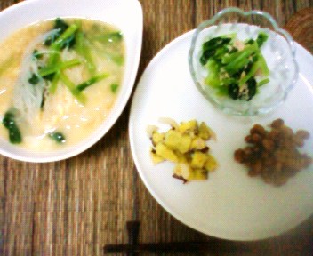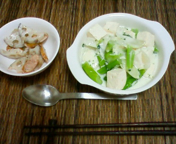 今日はなかなか終わらない「ホワイトシチュー」と「なすのお浸し」を食べました。お茄子が冷蔵庫で余ったままになっていたので焦ってたくさん食べられるメニューを作りました。一緒に入っていたきゅうりもあわててお漬物にしてサラダは諦めました(笑)。昼間に作ったスコーンを明日の朝に食べるのを楽しみに今晩は眠ることにします。