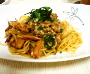 食べるものがないと結局行きつくところはパスタなんですよね。残り物の納豆やハム、冷凍してあるキノコもそろそろ綺麗にしようと思い、「納豆&きのこ和風パスタ」を作りました。麺つゆとバターを使うと本当に和風かつコクのある美味しいパスタが出来上がります。