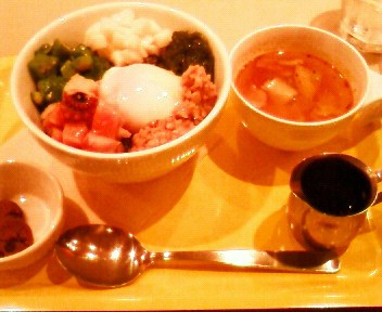 今日はお友達とランチをしてきました。丼ぶりカフェバーで、お昼はランチが食べられるんですよね。「健康ネバネバ丼(?だったかな)」を食べてきました。友人はキーマカレー丼を食べてました。スープは正直「なくてもよい」感じのどうでもいい味でしたが、「丼」は美味しかったです。