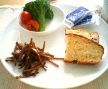 今日は「けんちん汁」を作ってみました。冷凍してあったごぼうやニンジンを使ってしまおううと思ってこのメニューを選択。冷凍してあっても美味しい葉っぱものと根菜ものはやっぱり味が違いますね。ちょっとがっかり。「けんちん汁」の味自体は良かったです。 お菓子を作りたくなって、「ジンジャースコーン」と「ジンジャーとクランベリーのケーキ」を作りました。食べたくてたまりません。